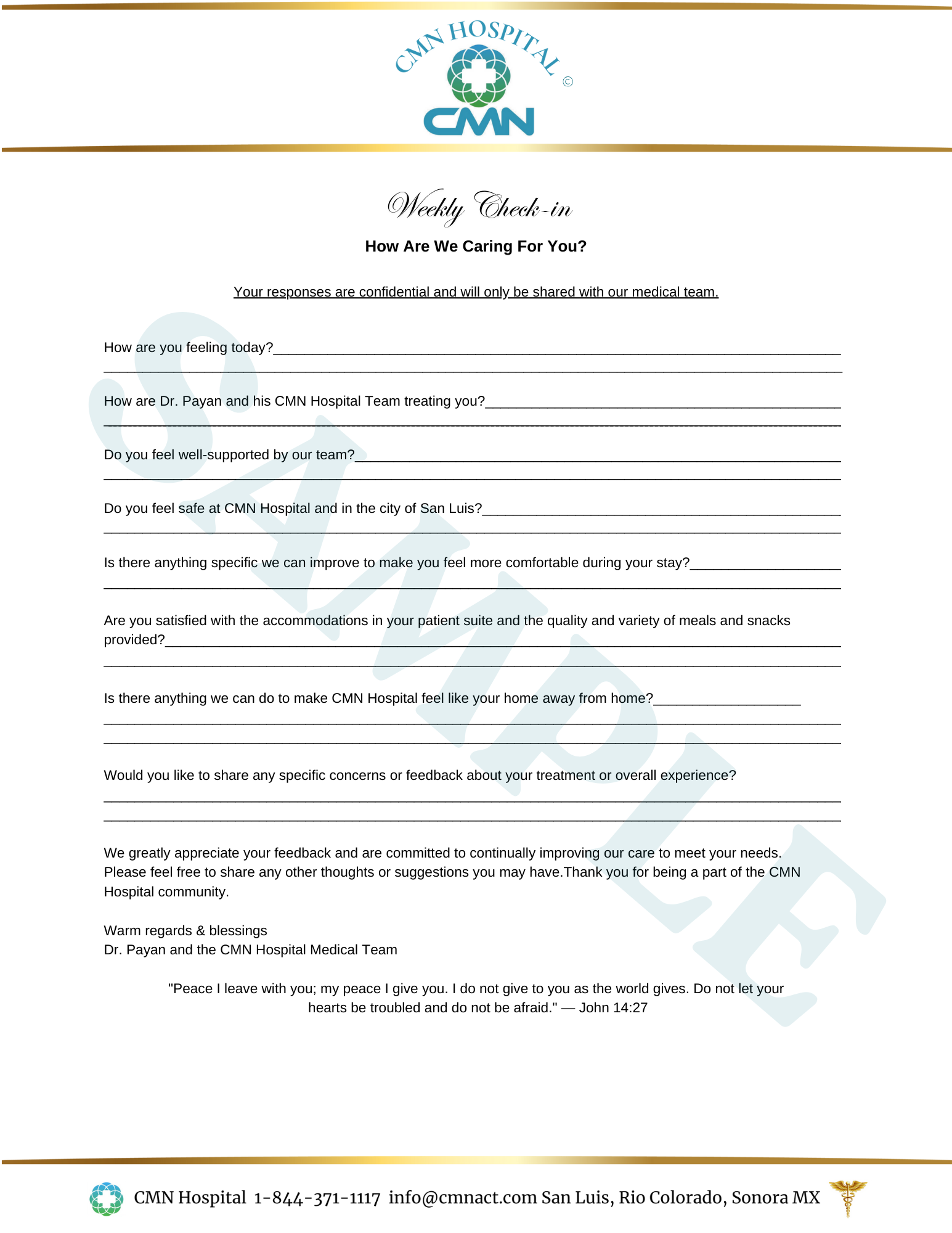 Did you feel safe, supported, and cared for? Your honest reflections guide us in continuing to provide compassionate, patient-centered care that exceeds expectations. (See Sample Below)